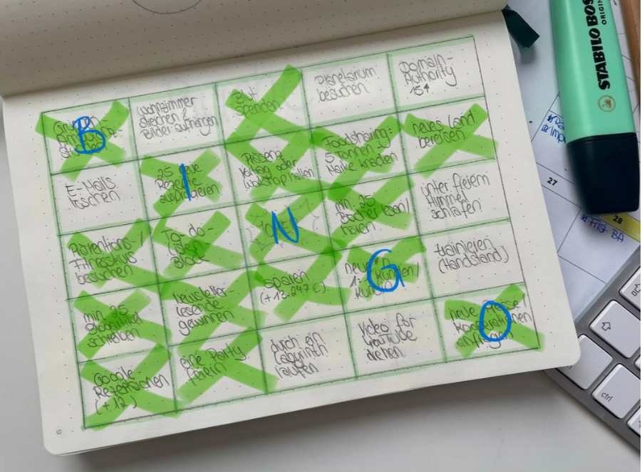 Das Jahr begann mit einem leeren Bingo-Feld und der Idee 25er Ziele zu setzen. Es endete mit einem BINGO! und Entscheidungen und Entwicklungen, von denen ich sagen muss „Das stand nicht auf meiner Bingo-Card“.